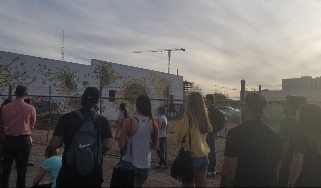 Students on an exploratory field trip of art in urban spaces, Phoenix, AZ, 2019, photo by author.